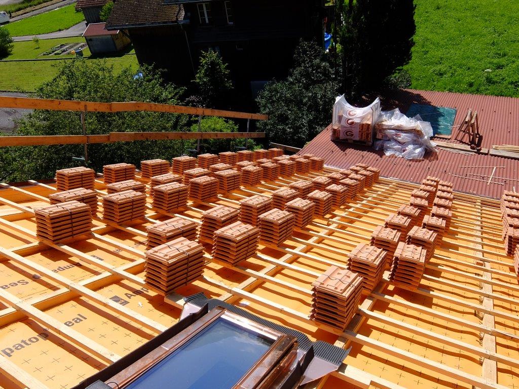 | | Dacheindeckung mit Ziegel Dacheindeckung mit Bergmuldenziegeln